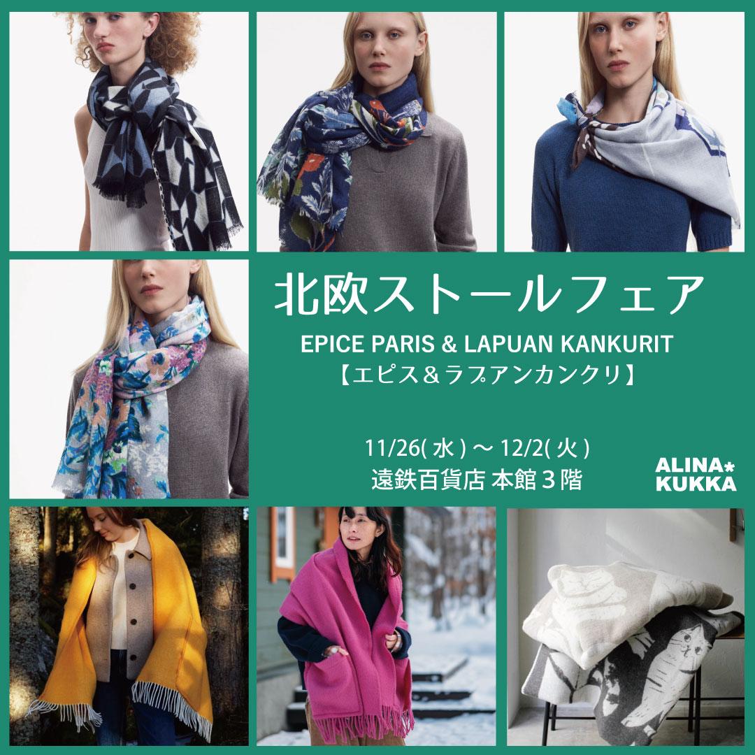 今季のエピスは「デンマークの文化、伝統遺産、アートへのリスペクト」です。インスピレーションは、コペンハーゲンの自由を象徴するボヘミアン的自治区・クリスチャニアやデンマークデザインの巨匠といわれる建築家アルネ・ヤコブセンの1950~60年代のテキスタイルアートや初秋の美しい風景など。アートな香りが漂いつつ北欧の繊細な温もりが共存しているストールで秋冬の装いをお楽しみください。