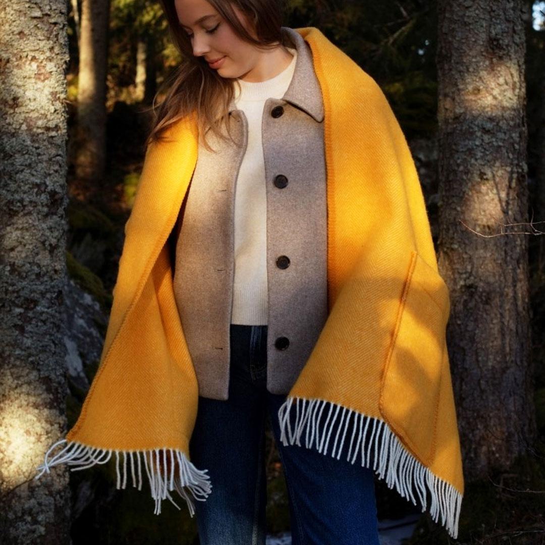 白樺のバスケットモチーフのウール100%ブランケットから新色はイエローが登場。ウールブランケットはソファーやベットにふんわりとかけるだけで空間に奥行きが出ます。タイムレスなデザインは長く愛せる一枚です。素材のウールはニュージーランド産羊毛をフィンランドのラプアン自社工場にて紡績したものを使用しています。