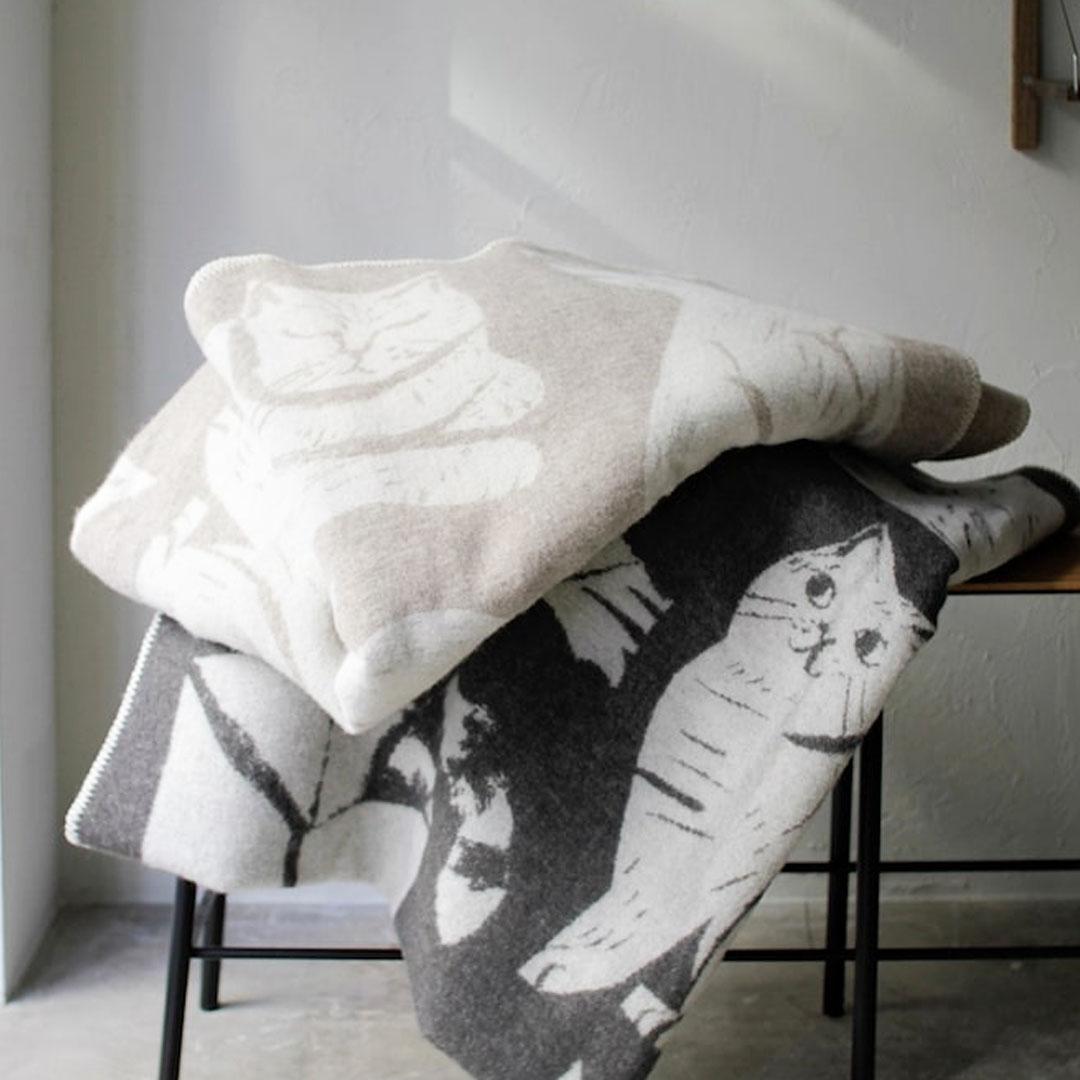 ラプアンの人気ブランケットのひとつ、動物シリーズ。日本でも人気のマッティ・ピックヤムサがデザインを手掛けています。自由なユニークな猫や犬の姿がおうち時間を楽しくしてくれます。表面感は生地を起毛させて作るフェルトタイプのブランケットです。